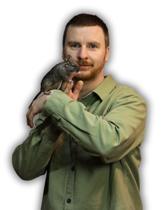 Od lat zajmuję się hodowlą różnych gatunków — nie tylko gryzoni, ale również ptaków (szczególnie kur ozdobnych), gadów oraz ryb akwariowych. To właśnie gryzonie są jednak ze mną najdłużej i to im poświęcam najwięcej uwagi.