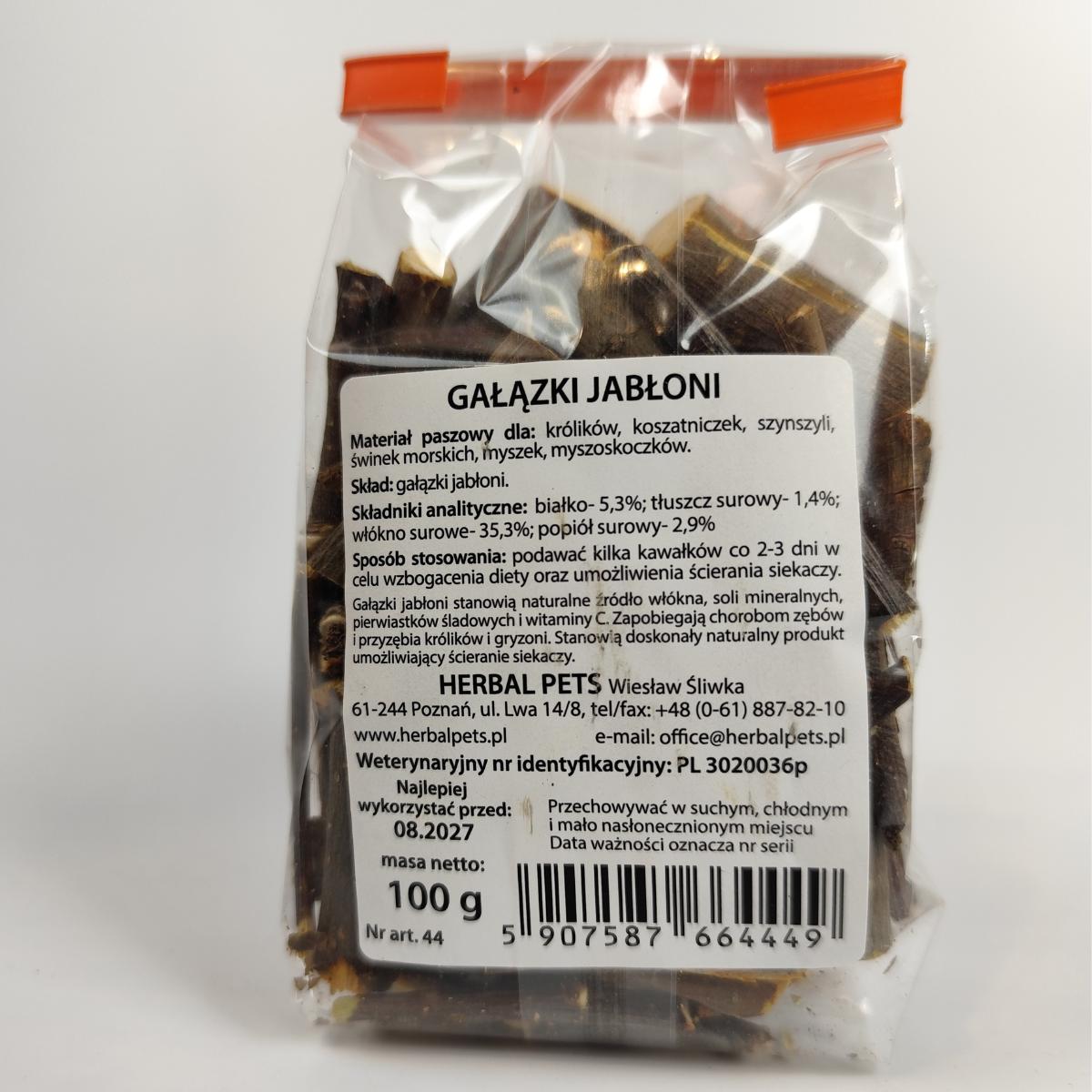 Gałązki jabłoni naturalne gryzaki dla gryzoni Herbal Pets 100g