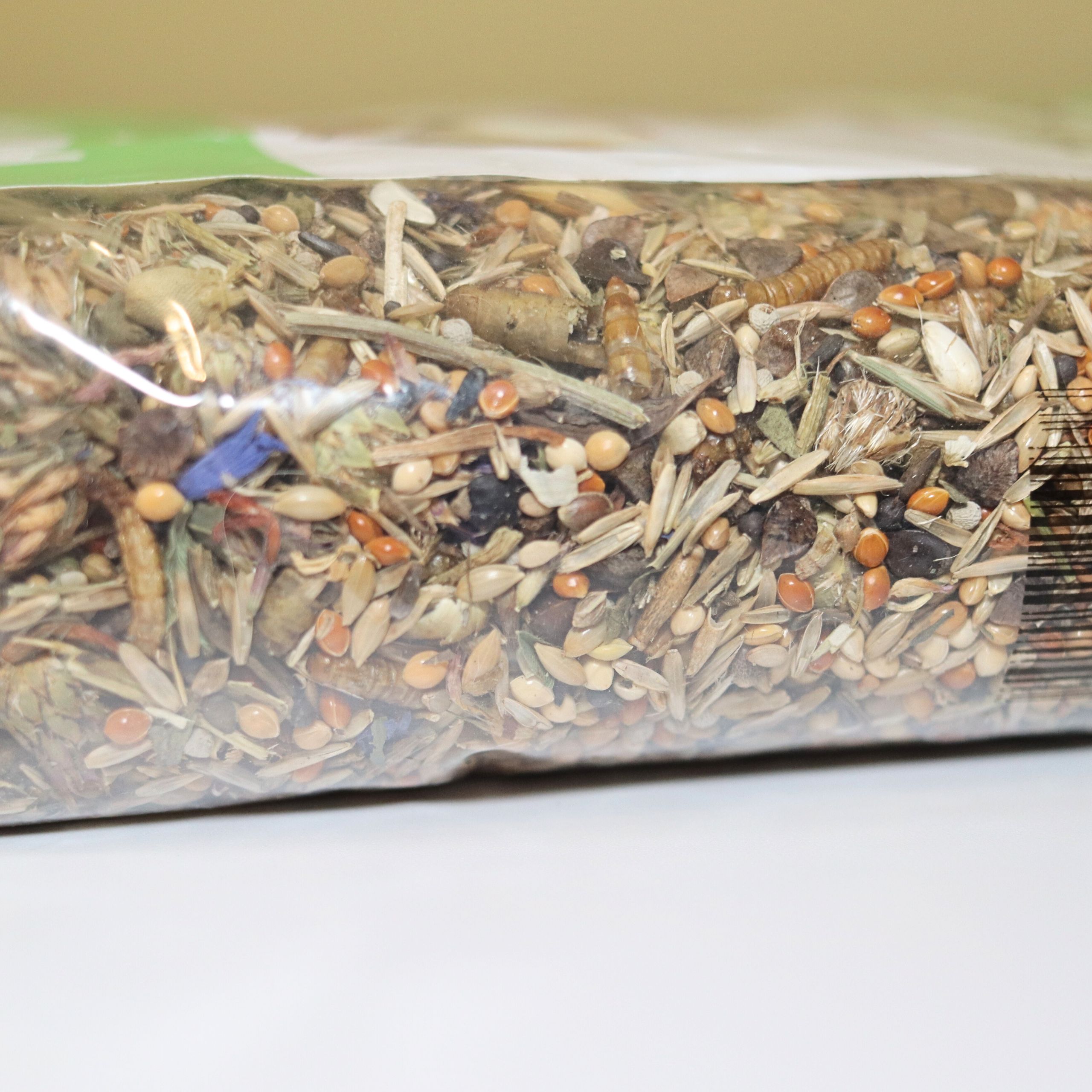 Skład: Nasiona traw, proso żółte, gryka, kanar, proso czerwone, proso srebrne, mącznik młynarek, rzepak, nasiona koniczyny, nasiona nigru, krokosz barwierski, nasiona marchwi, perilla, proso japońskie, nasiona sezamu, liście mniszka lekarskiego, nasiona konopi, kwiat koniczyny czerwonej, nasiona lnianki, nasiona ostropestu plamistego, kwiat bławatka, stokrotka, rdest, mak lekarski.