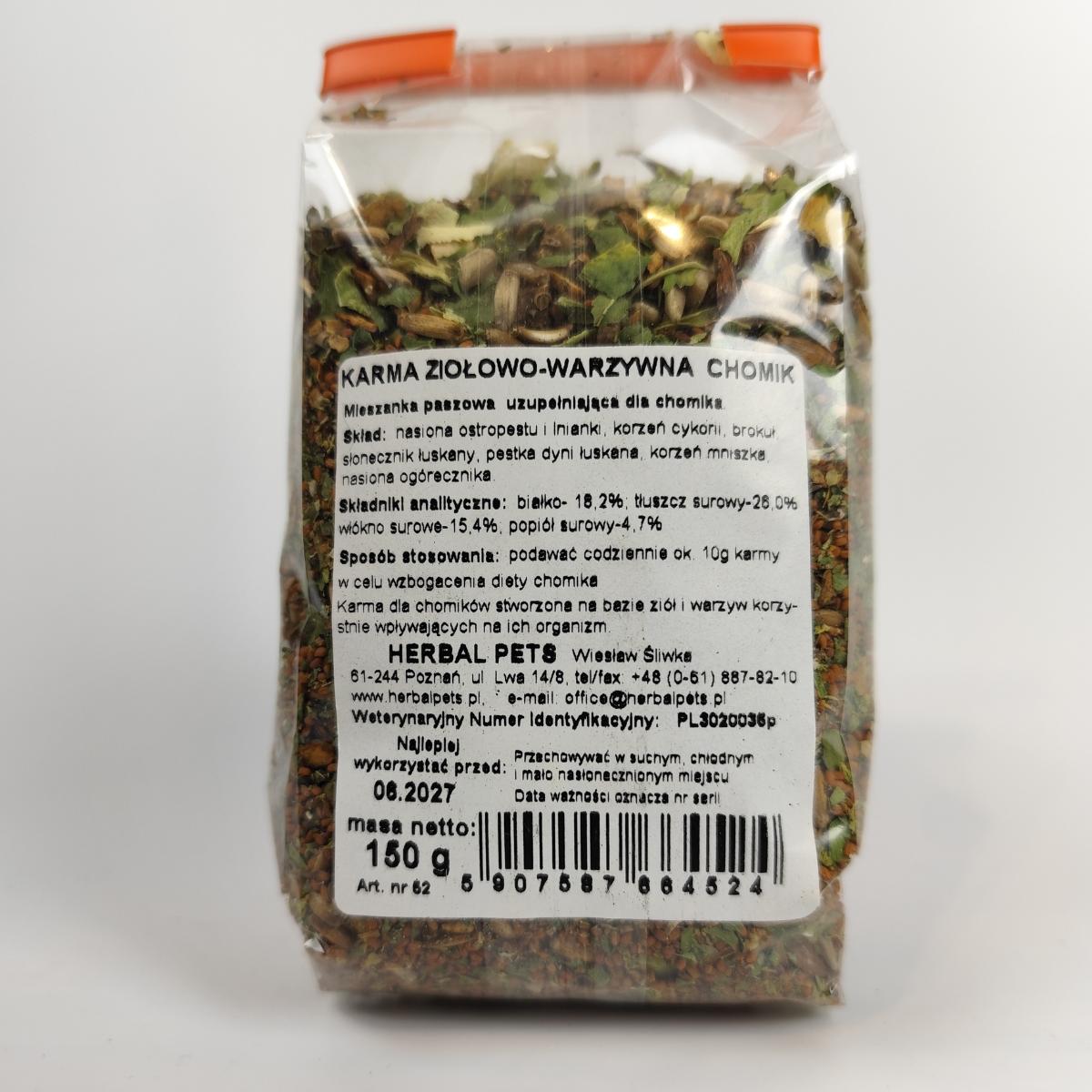 karma dla chomika ziołowo-warzywna Herbal Pets 150g