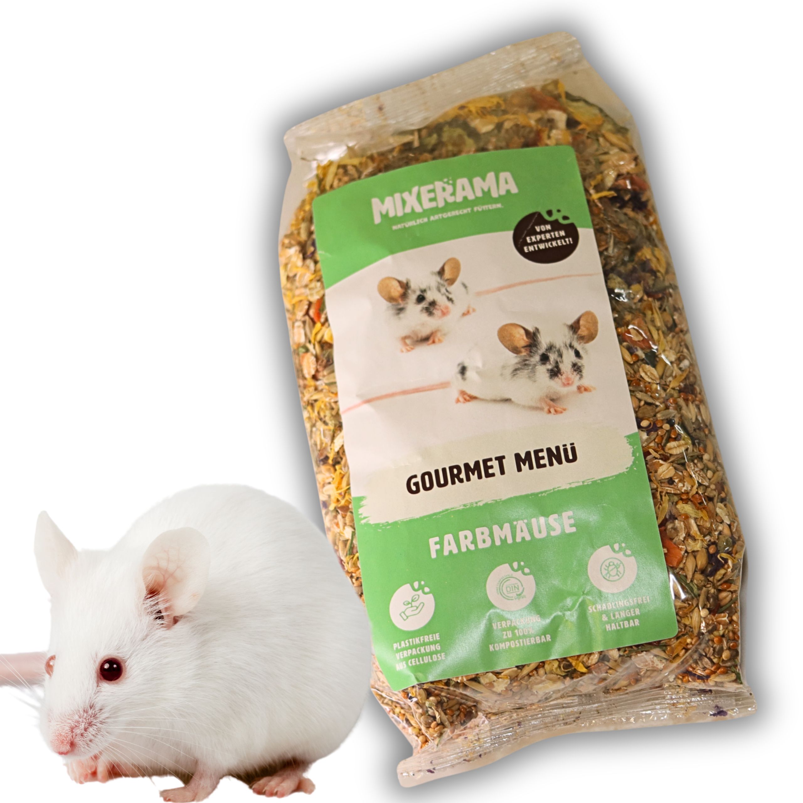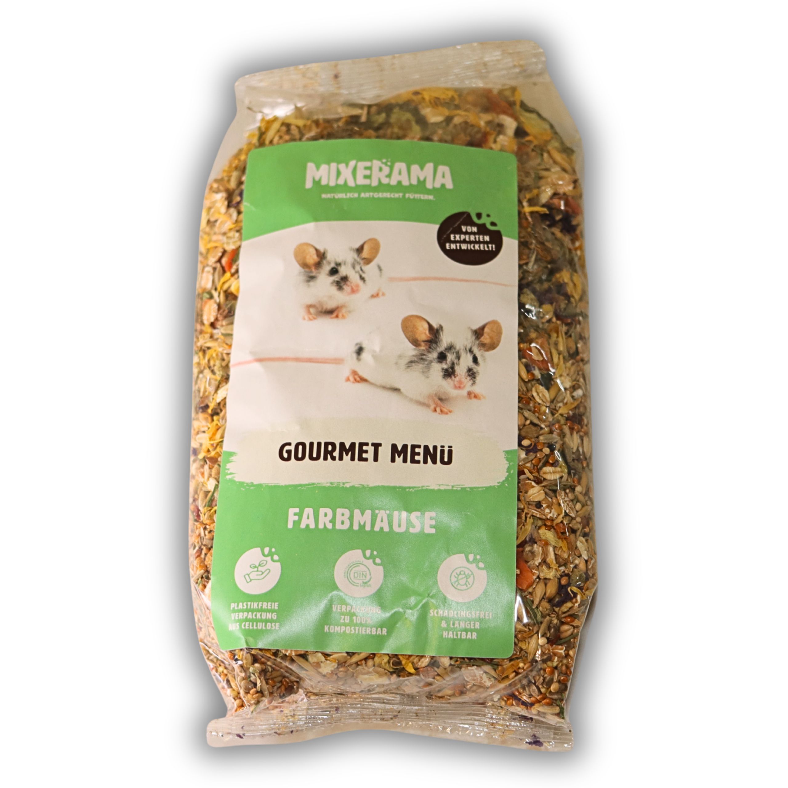 Mixerama Farbmause Gourmet Menu to zdrowa i pożywna mieszanka dla myszy, która zachwyca różnorodnością kwiatów, warzyw i ziół. Receptura została opracowana przez użytkowników Farbmaus-Info-Forum i opiera się na zróżnicowanej mieszance zbożowej z dużym udziałem naturalnych dodatków roślinnych.