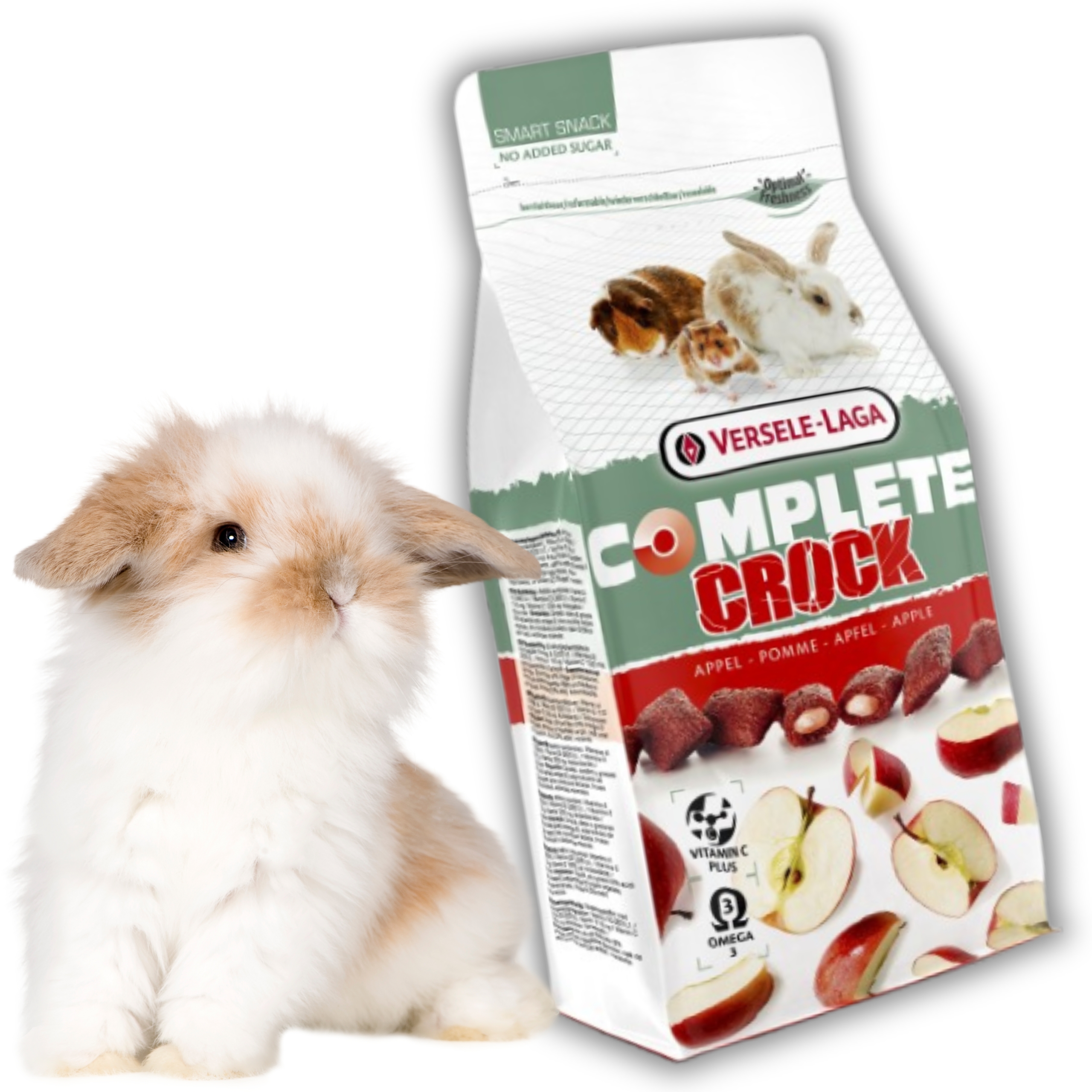 CROCK COMPLETE APPLE jest zdrową i smaczną przekąską dla gryzoni i królików. Ma postać chrupkich „poduszeczek” z miękkim, jabłkowym nadzieniem.