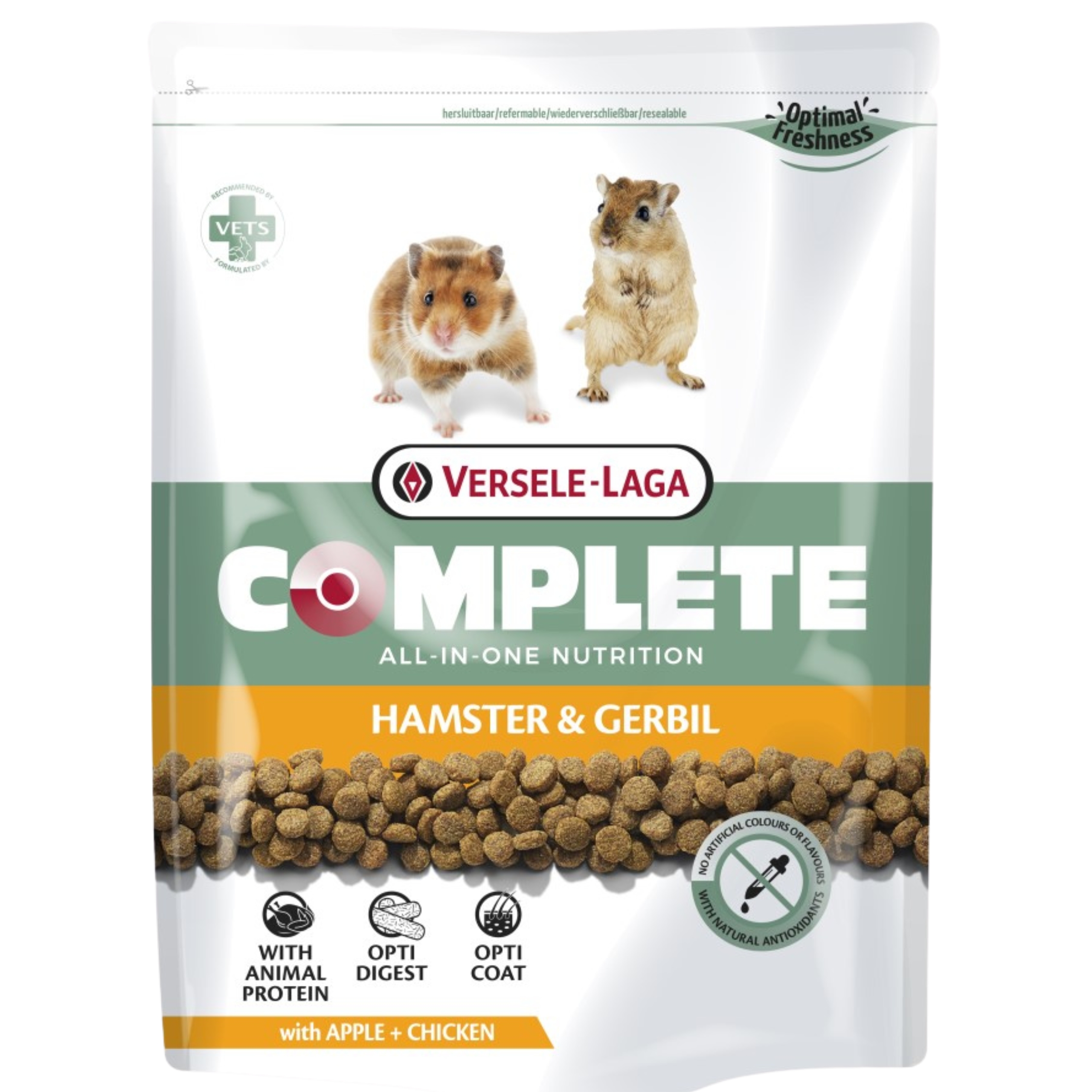 Karma dla chomików i myszoskoczków Versele Laga Hamster & Gerbil Complete to kompletna, ekstrudowana karma przeznaczona do codziennego żywienia tych aktywnych gryzoni. Produkt został opracowany w formule „wszystko w jednym”, dlatego każdy granulat zawiera pełen zestaw składników odżywczych.